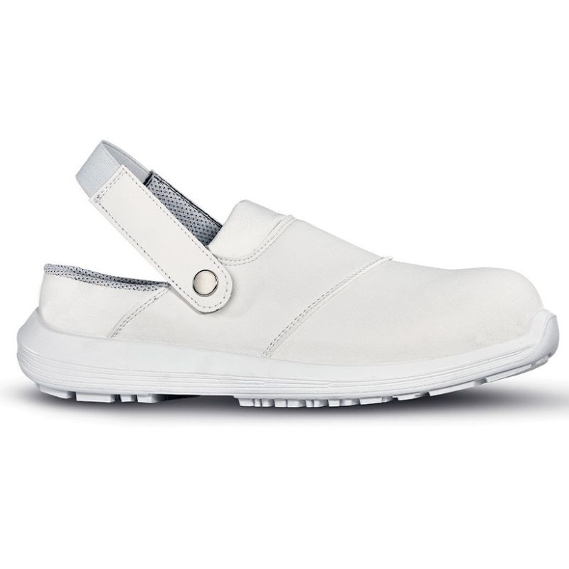 Normativa: norma SB A E FO SRC - Puntale: AirToe Composite con membrana traspirante - Plus: natural confort, wingtex, metal free - Peso: 413 g Mocassino antinfortunistico U-power Sinergy Grip SB A E FO SRC UW60021 Molto comodo e bello il mocassino Sinergy Grip firmato U-Power, ottimo per il periodo estivo, calzatura da donna dotato di cinturino, comode e leggere u power della linea Lei&Lei-White68&Black, con tomaia in microfibra Lucky, resistenti a batteri e residui organici chimici, facilmente lavabili, puntale AirToe Composite, antiscivolo e suola PU/PU, SB-E-A-FO SRC. Consigliato l' utilizzo in ambiti secchi, in campo chimico e per lavori di assemblaggio. Caratteristiche Tecniche del prodotto La normativa principale è la SB E A FO, che garantisce: SB: Resistente a 200 Joule impatto E: Assorbimento di energia al tallone (ammortizzatore) FO: Resistente agli idrocarburi SRC = questa normativa si riferisce invece alla suola, SRC è il livello più alto di antiscivolo esistente