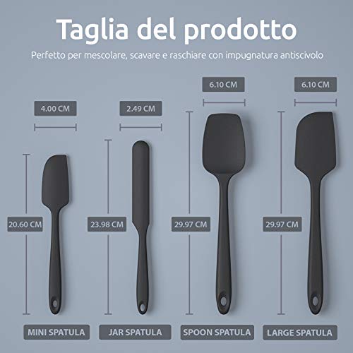 U-Taste Spatola Silicone Set da 4 Pezzi Spatola Pasticceria Resistente al Calore 315℃ Spatola Utensili per Cucina con Anima in Acciaio Inossidabile, Senza Cuciture, Antiaderente, Senza BPA (Nero)
