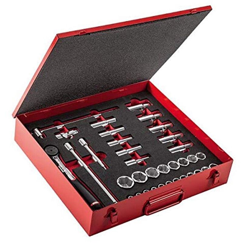 Nome stile:Set 35 pezzi Set di bussole professionale in cassetta di lamiera ed interno in spugna bicolore.