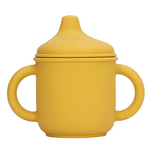 UBEF Tazza in Silicone a Prova di Perdite con Coperchio a Beccuccio, Tazza da Allenamento per Bambini Adatta Al Microonde, Portatile con Manici per la Scuola (Giallo)