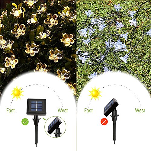 UBEGOOD Solare Natale Luci, 50 LED Fairy String Light Stringa Natale Lampada Decorativa Forma di Fiore Impermeabile per All'aperto, patio, Festa di Natale, Giardino, Casa, Matrimonio (Bianco Caldo)