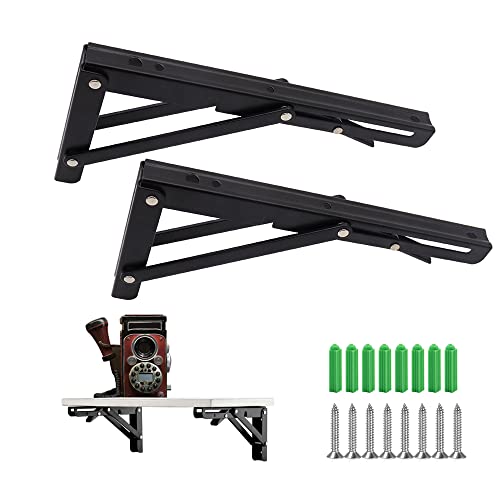 UBERMing 2 Pezzi Staffe Pieghevoli per Tavolo a Muro 250mm Reggimensola Pieghevole da Parete Staffe per Mensole Cerniera Reggimensole Pieghevoli per Tavolo da Lavoro Salvaspazio Fai-da-te