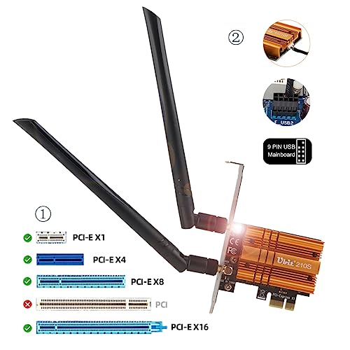 Ubit Scheda di rete, AX210 PCIe Scheda WiFi 6E, Max 5374Mbps con BT 5.2,Tri-Bande(6G/5G/2.4G),802.11AX con MU-MIMO,OFDMA,Ultra-Low Latency,Supporto Windows 10/11 64bit