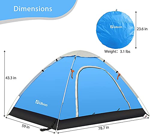 Ubon Tenda Pop-Up da 2 a 3 Persone Tenda da Campeggio Leggera Istantanea Forte Tende Installazione Rapida in Due Fasi Automatica Tenda da Sole e Antivento Portatile Esterna da Viaggio Blu 3P