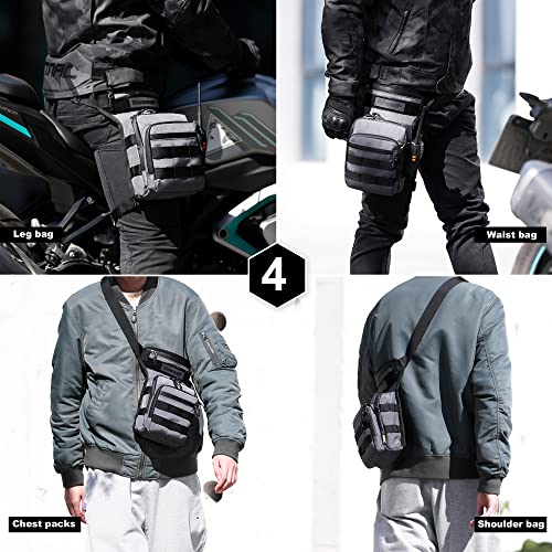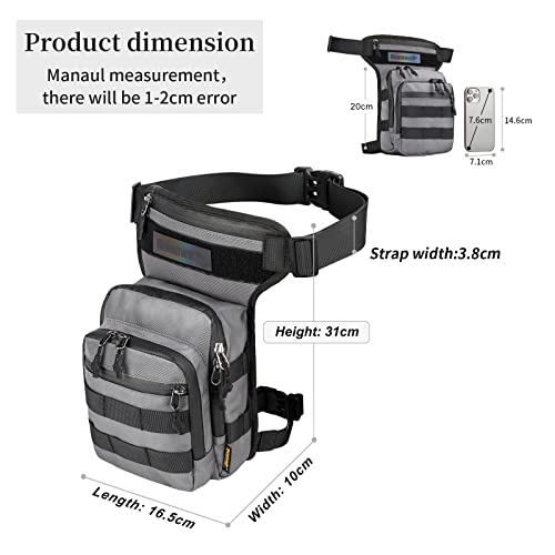 UBORSE Tattico Militare Borsa da Gamba Appesa con Sistema MOLLE, Pratica Borsa da Vita alla Coscia Marsupio Multifunzionale per L'equitazione in Moto Campeggio All'aperto, Grigio