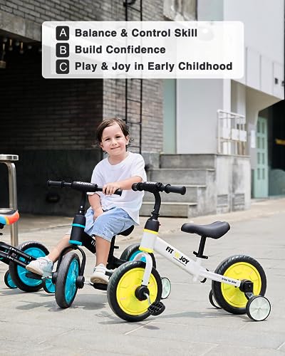 UBRAVOO Fit 'n Joy Bicicletta da Allenamento per Bambini, Bici da Equilibrio per Bambini 4 in 1 con Pedali e Ruote da Allenamento, Giocattoli da Equitazione da Trike a Bici per Ragazzi Ragazze 2-5