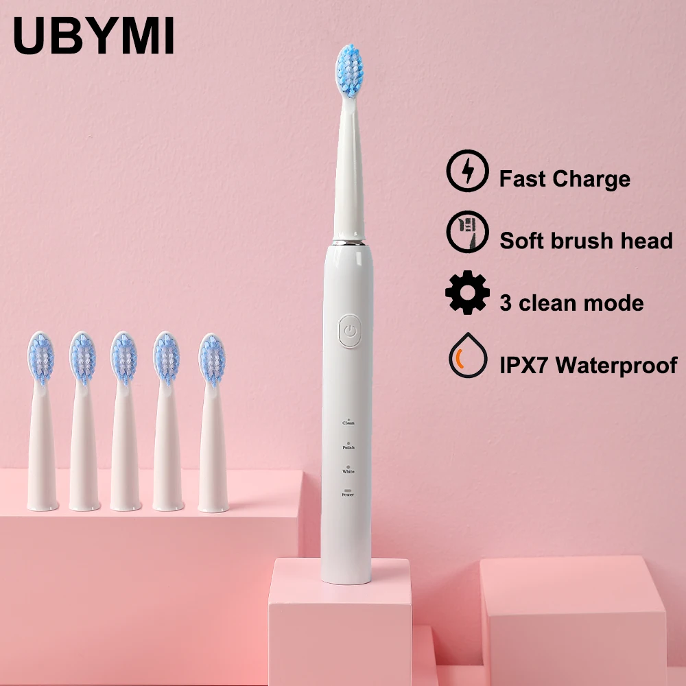 UBYMI Electric Toothbrush Rechargeable Buy One Get One Free Sonic Toothbrush 3 Mode Travel Toothbrush with 3 Brush Head Gift