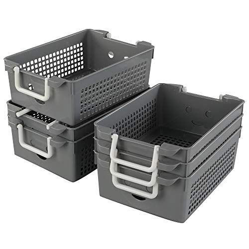 Ucake Rettangolo Cestini Cestino Cesti Portaoggetti Cesta Porta Plastica, Grigio, 6 Pezzi