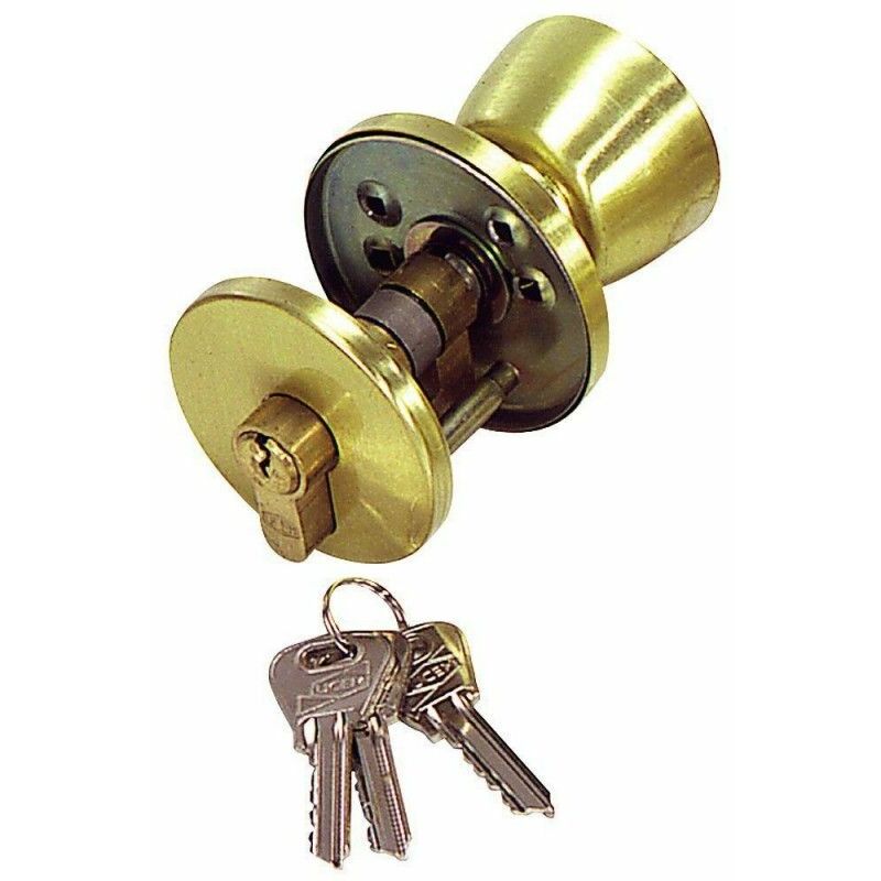 Cilindro UCEM 5000-p la 53. - Senza pomolo. - Dotato di cilindro a profilo europeo 5000p. - Scrocco reversibile. - Finiture in ferro ottonato. - Articolo noto anche come bombillo, bombetta, profilo europeo/pera.