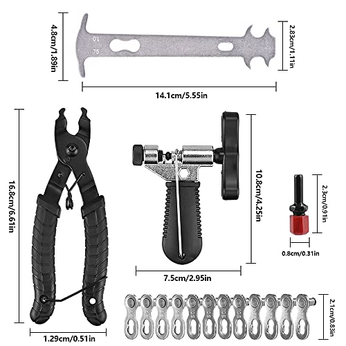 Udbrud Kit di Attrezzi per la Riparazione di Bici, Catena Pinza+ Splitter per Catena Bici+Calibro a Catena + 6 Paia di Catene per Biciclette, 6/7/8/9/10 velocità