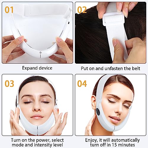 【Massaggiatore viso multifunzionale】:La nostra cintura elettrica per il sollevamento del viso ha diverse funzioni come la terapia della luce LED, il sollevamento del viso, il massaggio del viso, il rafforzamento della pelle, ecc. Non è necessario acquistare altre apparecchiature e si può facilmente ottenere un trattamento viso professionale di livello SPA a casa propria.