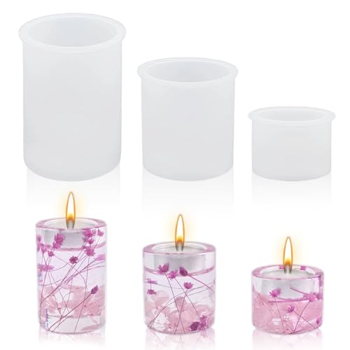 【Stampo in silicone per portacandele】: Set di stampi per portacandele con 3 stampi in silicone a cilindro per portacandele, lo stampo per portacandele è adatto per realizzare squisite luci da tè.