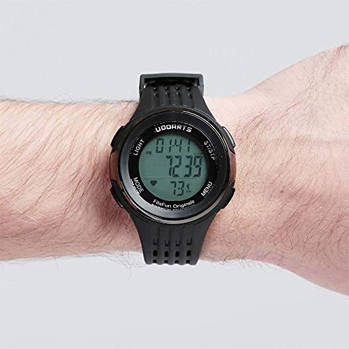 UDOARTS HRM con contapassi, cardiofrequenzimetro e fascia toracica, confezione da 5 batterie e cacciavite (nero)
