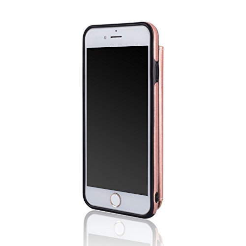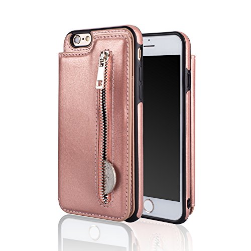 UEEBAI Case for iPhone 6 6S, Luxury PU Leather Case with Zipper Button Design [Card Slots] Stand Function Practical Flexible TPU Case Back Wallet Purse Flip Cover for iPhone 6/6S - Rose Gold