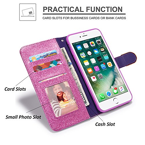 UEEBAI Case for iPhone 6 6S, Premium Bling Glitter Glossy PU Leather Wallet Case Flip Cover with [Diamond Buckle] [Card Slots] [Magnetic Clasp] Stand Function Rhinestone Handbag Style Inner Flexible TPU Case with Wrist Strap for Apple iPhone 6/6S - Purple