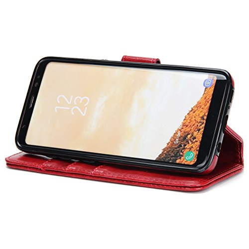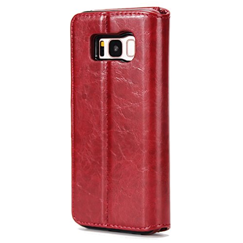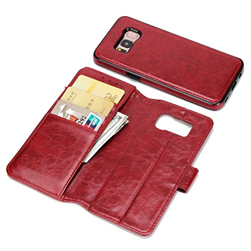 UEEBAI Case for Samsung Galaxy S8,Premium Folio PU Leather Wallet Case with [Detachable] [Magnetic Closure] [Card Slots] Stand Function Full Protection Flip Cover Case for Samsung Galaxy S8 - Red