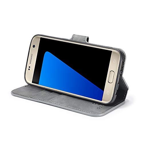 UEEBAI Cover per Samsung Galaxy S7, custodia in pelle PU a portafoglio retrò antiurto flip case custodia con slot per carte funzione supporto, chiusura magnetica - grigio