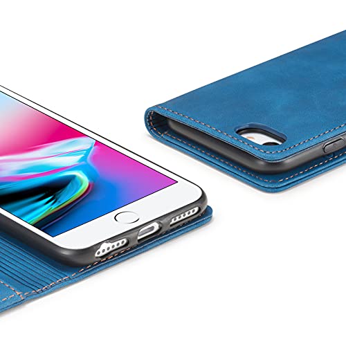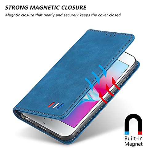 UEEBAI Custodia a Portafoglio per iPhone SE 2022 5G/iPhone 7/iPhone 8/iPhone SE 2020, Custodia in Pelle PU con Custodia Portafoglio in Cavalletto Custodia Antiurto per iPhone SE3/SE2- Blu