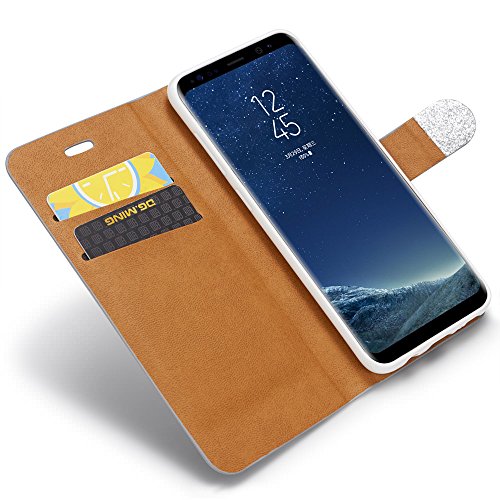 UEEBAI custodia per Samsung Galaxy S7,caso Bling Glitter lusso con [chiusura magnetica] [slot schede] [cavalletto] PU Leather Flip Custodia a portafoglio con elegante fiore modelli di stampa per Samsung Galaxy S7 - Argento
