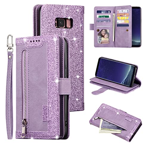 UEEBAI Custodia per Samsung Galaxy S8 Plus, Portafoglio in Pelle PU Retro Antiurto Flip Cover Antiurto con Slot per Schede Funzione Stand Chiusura Magnetica - Glitter Viola