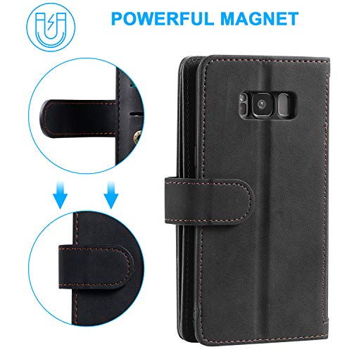 UEEBAI Custodia per Samsung Galaxy S8, Portafoglio in Pelle PU Retro Antiurto Flip Cover Antiurto con Slot per Schede Funzione Stand Chiusura Magnetica - Nero