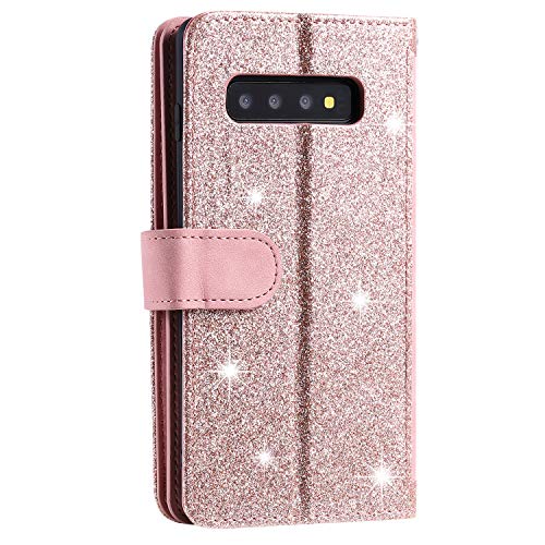 UEEBAI Custodia per Samsung Galaxy S10, Portafoglio in Pelle PU Retro Antiurto Flip Cover Antiurto con Slot per Schede Funzione Stand Chiusura Magnetica - Oro rosa