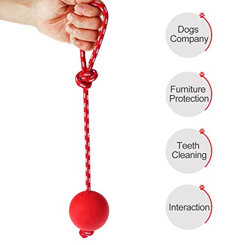 UEETEK Pet Gomma da Masticare Palla Giocattolo con Corda, Cane Palla Interattiva Ball Gettatore per Animali Domestici Che Giocano Allenamento Esercitare, Palla Diametro 7.5cm