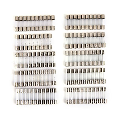 UEETEK 100 pezzi 10 Valori Fusibili vetro soffiato rapido Fusibili rapidi per tubi in vetro per auto soffiate Kit assortito Amp 0.2A 0.5A 1A 2A 3A 5A 6A 8A 10A 15A