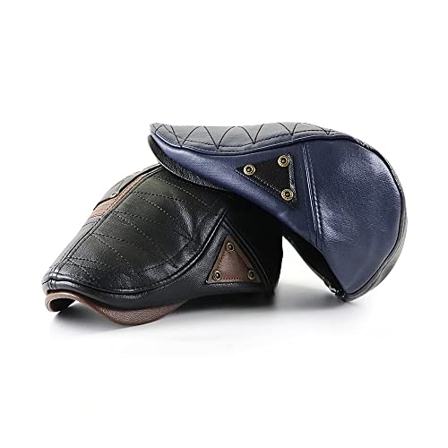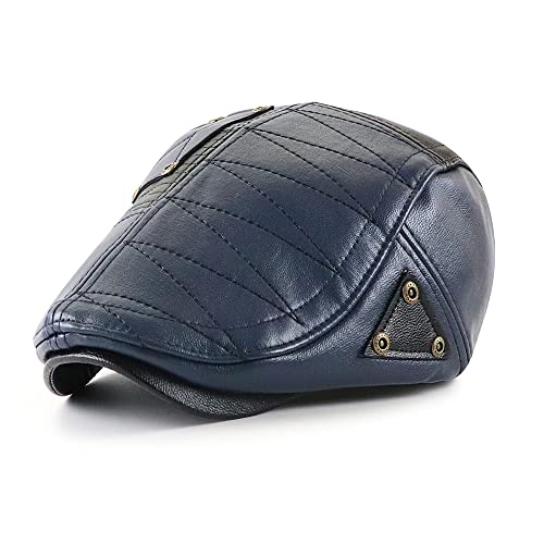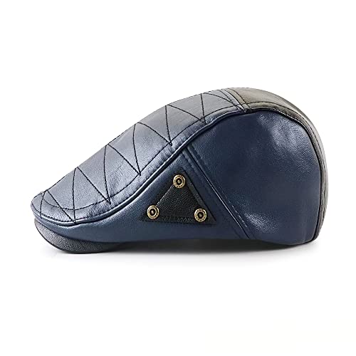 Ueither Uomo Berretto Piatto Regolabile in PU Pelle Newsboy Beret Cappello (Blu Scuro)
