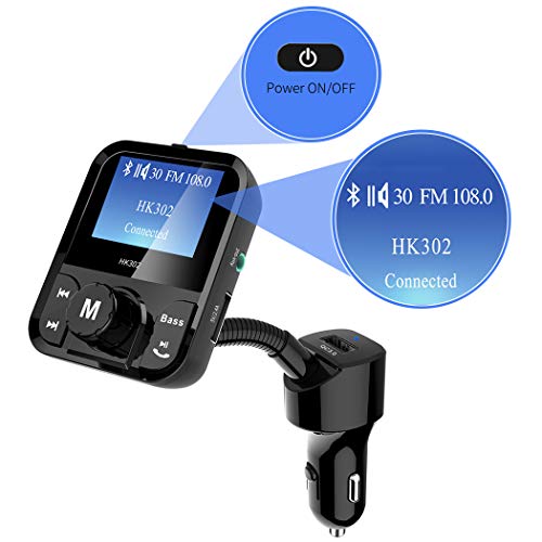 【Trasmettitore FM Bluetooth aggiornato transmitter Trasmettitore autoradio Uekars versione Bluetooth aggiornata a 5.0. Con il pulsante di accensione / spegnimento che lo rende disponibile per essere spento anche se rimane nell'accendisigari, quindi non devi preoccuparti che consumerà la batteria. Il design del collo di cigno semplifica l'utilizzo dell'adattatore Bluetooth per auto nella tua auto.