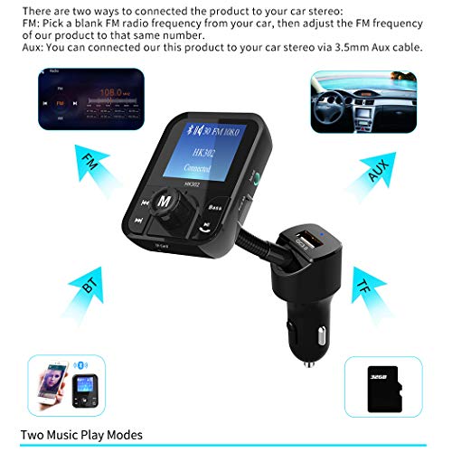 Uekars Bluetooth 5.0 Adattatore Radio per Auto, Kit per auto Bluetooth vivavoce con ricarica QC3.0, Riproduzione Musicale di Schede TF con Uscita AUX, Supporta Siri Voice Assistant