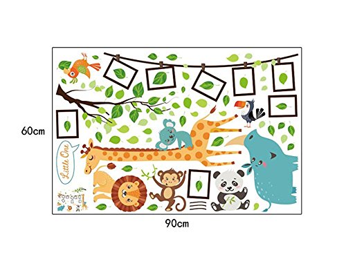 Ufengke Adesivi Murali Cornici Fotografiche Animali Adesivi Muro Giraffa Scimmia Uccelli Albero DIY Vinile Decorazione Murale per Asilo Nido Soggiorno Camera da Letto Bambini