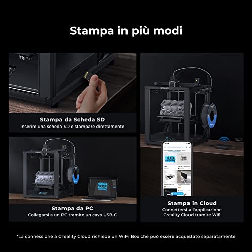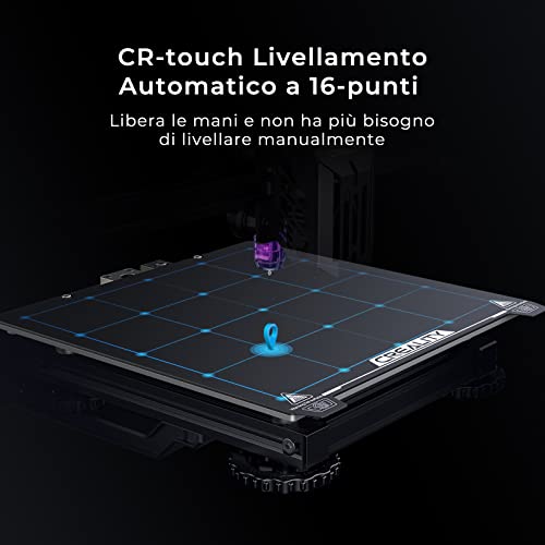 【Livellamento Automatico e Sensori Intelligenti】: La sonda CR Touch realizza un livellamento del letto preciso a 16 punti completamente automatico. L'offset Z può essere regolato con una precisione di 0,05 con il controllo touch. È inoltre dotata di un sensore di scentratura del filamento e di un recupero delle perdite di potenza per tenere conto dei momenti accidentali. È uno strumento su cui contare sempre.
