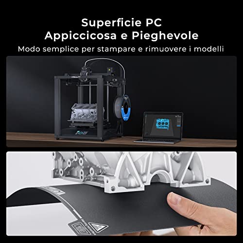 【Superficie di Costruzione PC Adesiva e Pieghevole】: La lastra in acciaio elastico PC è dotata di due tacche e di una base magnetica per una rapida installazione. La superficie PC smerigliata aderisce ai modelli. Dopo la stampa, il modello pu