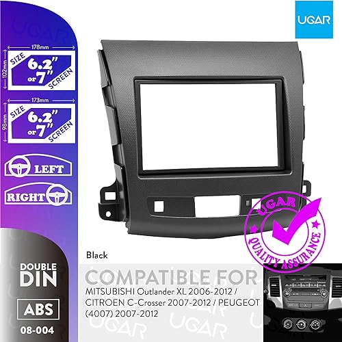 UGAR 08-004 Doppio kit di Montaggio kit fascia radio compatibile per Mitsubishi Outlander XL 2006-2012 / Citroen C-Crosser 2007-2012 / Peugeot (4007) 2007-2012