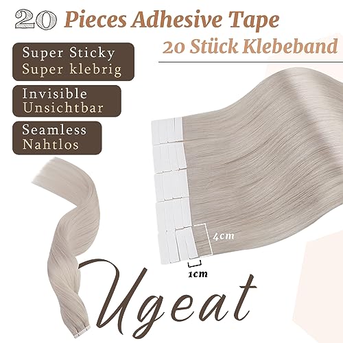 Ugeat Exstescion Capelli Veri Biadesivo 35cm Tape in Human Hair Extensions 50GR/Pack Extension Capelli Veri con Adesivo Bionda Bianca #1000