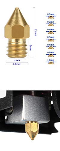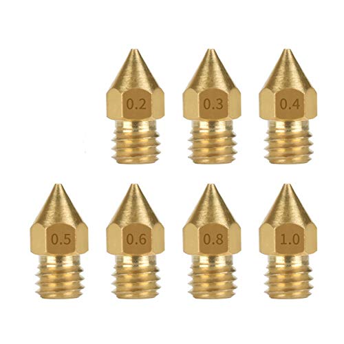 5 ugelli filettati M6 da 0,2 mm, 0,3 mm, 0,4 mm, 0,5 mm, 0,6 mm, 0,8 mm, 1,0 mm di ottone mk8 da 3 mm, filettatura M6 per stampante 3D (1,0 mm).