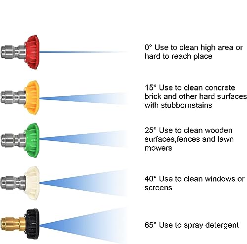 Ugelli a Spruzzo Punte Ugello a Pressione,Set Ugelli Spruzzatori Idropulitrice Punte,Spruzzo Rapido Della Rondella Ugello ad Alta Pressione,Ugelli a Connessione Rapida da 1/4 Sono,5 pezzi