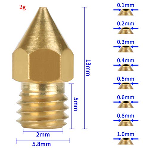 Contenuto della confezione: 5 ugelli estrusore MK8 per filamento da 1,75 mm o 3 mm. Diametro a scelta