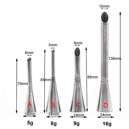 WHK Ugelli per Torta da 4 Pezzi - Kit ugelli per ugelli con Punta per ugello a Sbuffo per Crema in Acciaio Inossidabile con tubazioni Lunghe Punta per tubazioni Crema