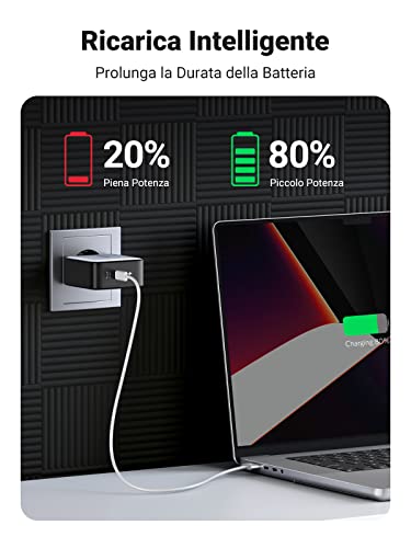 UGREEN 100W Caricatore USB C 2 Porte con Tecnologia GaN, Caricabatterie USB Compatibile 30W/20W con MacBook Pro/Air iPad Pro/Air iPhone 13/12 Galaxy S22/S21 e Altri Smartphone Tablet PC Laptop ecc.