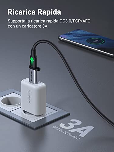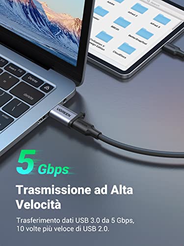 UGREEN Adattatore USB C a USB 3.0 5Gbps, Adattatore Femmina a Maschio Alluminio Supporta Ricarica 3A Compatibile con PC, Laptop, Chiavetta, Hard Disk, Hub, Caricabatteria per Auto
