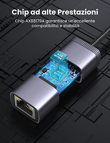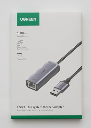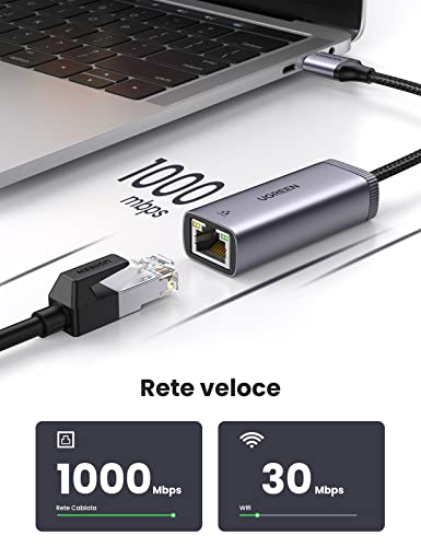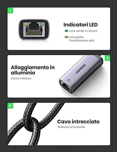UGREEN Adattatore Ethernet USB 3.0 Gigabit 1000Mbps in Alluminio con Cavo Nylon Adattatore di Rete Supporta Windows Mac OS Linux Chrome OS Compatibile con Switch MacBook Pro Air