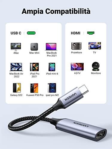UGREEN Adattatore USB C a HDMI 4K@60Hz, Cavo Type C Maschio a HDMI Femmina in Alluminio Compatible with iPad Pro 2021/Air4, MacBook Air/Pro 2020 M1, Surface Go, Galaxy S21/S20, Huawei P40/Mate 40/XS