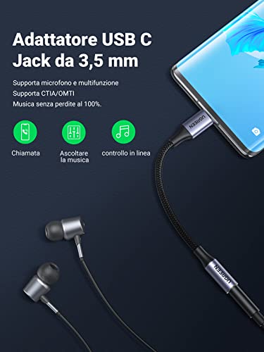[ Compatibilità Limitata ] UGREEN adattatore da USB C a Jack supporta SOLO Huawei P40/ P40 Pro/ P30 Pro/ P20 / P20 Pro/ Mate 30 Pro/ Mate 20 Pro/ Mate 10 Pro, OnePlus 8/8 Pro/ 7T/ 7T Pro/ 7/ 7 Pro/ 6T, Xiaomi 13/ 12/ Mi 10/ Mi 10 Pro/ Mi 9 Pro/ Mi 9/ Mi 9 SE/ Mi 8/ Mi 8 Lite/ Mi 8 SE/ Mi 6/ Mi A2/ Mi 6X/ Mix 3/ Mix 2/ Mix 2S/ Note 3, Honor V30/ V30 Pro, Honor 20/20 Pro, tablet Huawei M5/ M5 Pro/ M6 (8,4 pollici).