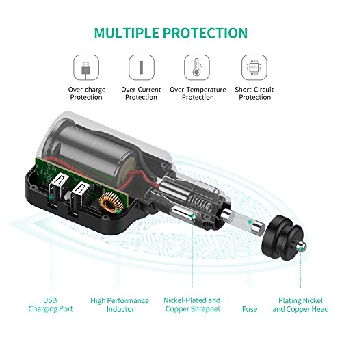 UGREEN 77W Caricatore Auto con Presa Accendisigari, Caricabatteria Telefono per Auto con 2 Porte USB, Car Charger Alimentatore Auto per GPS, iPad, iPhone X/8/8 Plus, Samsung Note8/S8, Huwei, ECC.