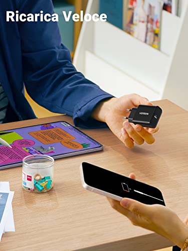 UGREEN 20 W Caricatore USB C PD 3.0 Compatibile con iPhone 14 14 Pro 14 Pro Max 13 Pro 12 Pro 11 XR X iPad Pro Mini Air Galaxy S22 Plus S21 S20, Cavo non Incluso (nero)