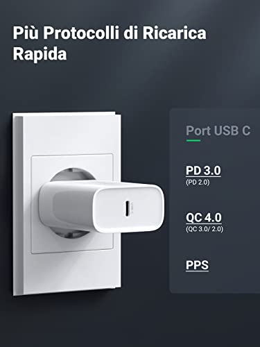 [Con Diversi Fast Charge Protocolli] UGREEN 30W caricabatterie usb c supporta protocolli di ricarica rapida come Power Delivery 3.0/ 2.0, Quick Charge 3.0 / 2.0, Battery Charging Specification 1.2, ti consente di ottimizzare l'efficienza di ricarica e risparmiare tempo.