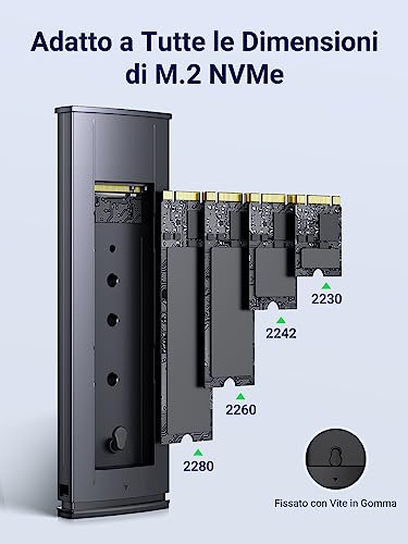 < Progettato per le unità SSD M.2 NVMe > Supporta l'alloggiamento M.2 NVMe M KEY e B+M KEY, compresi i dischi rigidi M.2 2230/2242/2260/2280, come SSD 970 EVO/970 EVO Plus/970 PRO/960 EVO/960 PRO/950 PRO;