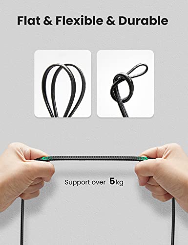 [ Design Piatto Più Pratico ] Rispetto al cavo tradizionale tondo, Il design piatto è più in linea con le abitudini di utilizzo quotidiano. Con un'altezza di 3 mm e una larghezza di 8 mm, mini design, che consente di risparmiare spazio e può essere posato liberamente in qualsiasi angolo stretto della casa. Il design piatto previene la rottura del conduttore e i danni causati dalla piegatura del cavo. Si nasconde facilmente nel tappeto e si muove ordinatamente attraverso gli angoli della porta.